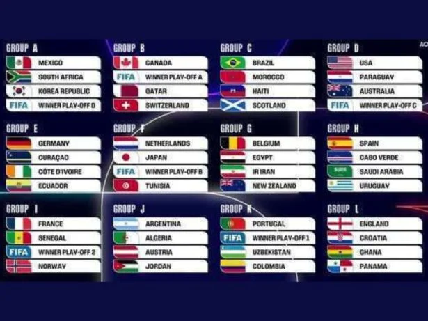 A Copa do Mundo de 2026 apresentará um novo formato, com 12 grupos de quatro equipes cada. Avançarão para a próxima fase os dois melhores de cada grupo, além dos oito melhores terceiros colocados, totalizando 32 seleções na etapa eliminatória. Serão ao todo 104 partidas distribuídas por 16 cidades-sede.
