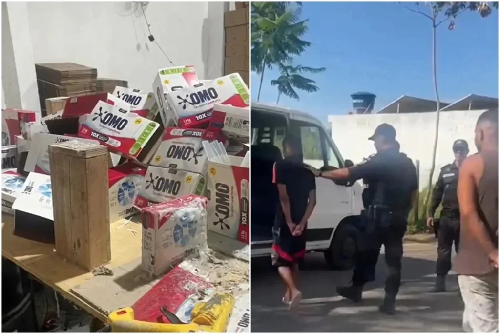 Na fábrica clandestina, os policiais encontraram aproximadamente **9 mil embalagens de sabão em pó falsificado**, já prontas para distribuição. O material, que simulava a conhecida marca OMO, seria enviado para diferentes estados, demonstrando a **estrutura e o alcance do esquema** do Comando Vermelho para movimentar os lucros do tráfico.