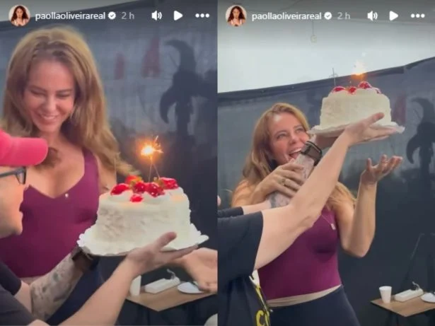 Nas redes sociais, Paolla compartilhou momentos da homenagem recebida de sua equipe de trabalho, que preparou um bolo e cantou parabéns durante o expediente. A atriz demonstrou sua felicidade, exclamando: “Começaram as comemorações!”. O ator Emilio Dantas, colega de elenco no novo thriller erótico da Netflix, “A Estranha na Cama”, também marcou presença.